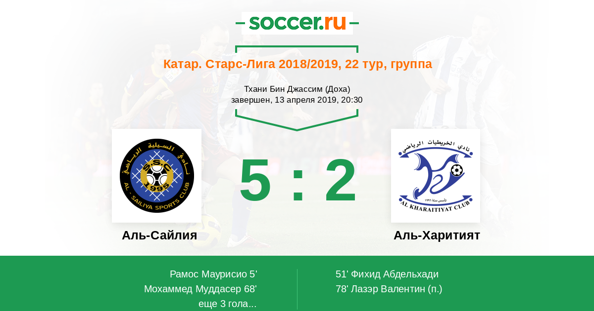 Катар. Старс Лига 18.04.2013 Аль-Харитият Логотип футбольный клуб Аль-Харитият 0:2 Логотип футбольный клуб Аль-Сайлия (Доха) Аль-Сайлия