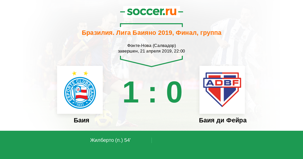 Бразилия. Лига Баияно 14.04.2019 Баия ди Фейра Логотип футбольный клуб Баия ди Фейра (Фейра-ди-Сантана) 1:1 Логотип футбольный клуб Баия (Салвадор) Баия