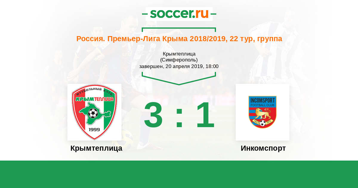 Россия. Премьер-Лига Крыма 18.08.2019 ТСК Логотип футбольный клуб ТСК (Симферополь) 2:1 Логотип футбольный клуб Инкомспорт (Ялта) Инкомспорт