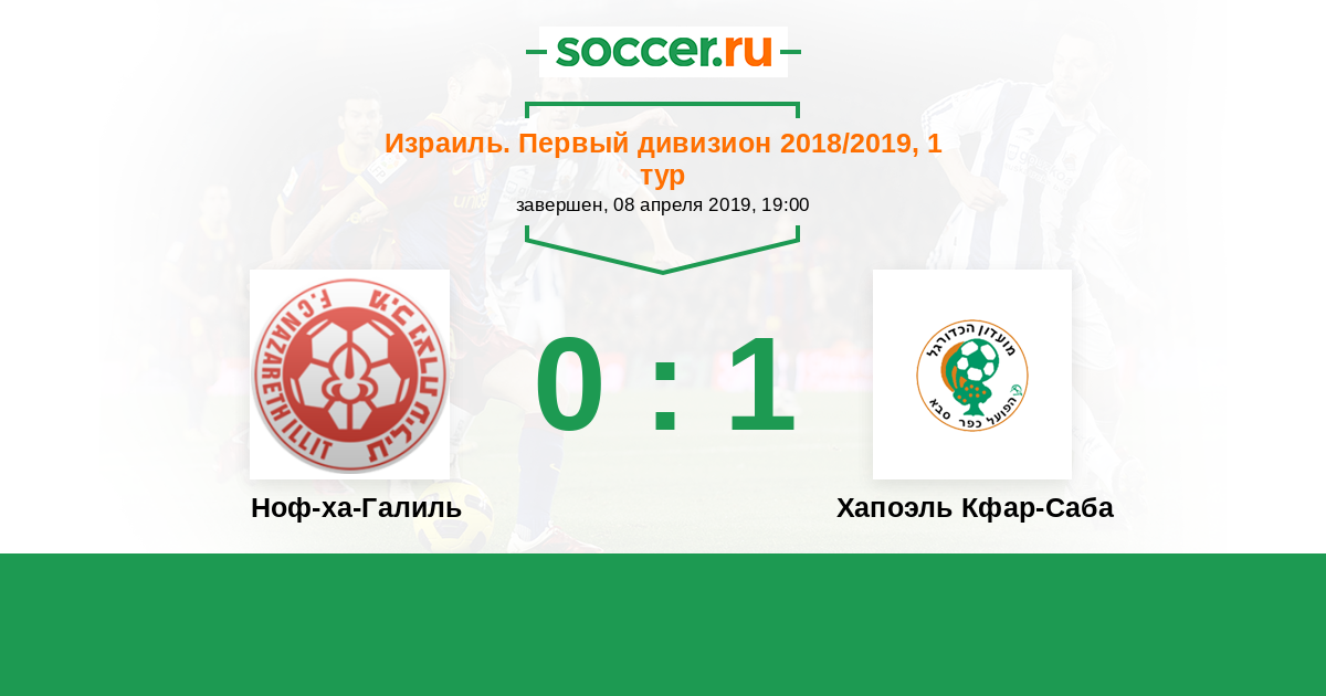 Израиль. Первый дивизион 05.04.2018 Ноф-ха-Галиль Логотип футбольный клуб Ноф-ха-Галиль (Назарет Иллит) 3:0 Логотип футбольный клуб Хапоэль Кфар-Саба Хапоэль Кфар-Саба