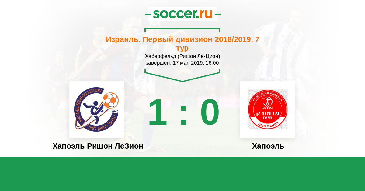 Хапоэль Ришон ЛеЗион 12:6 5:5 7:1