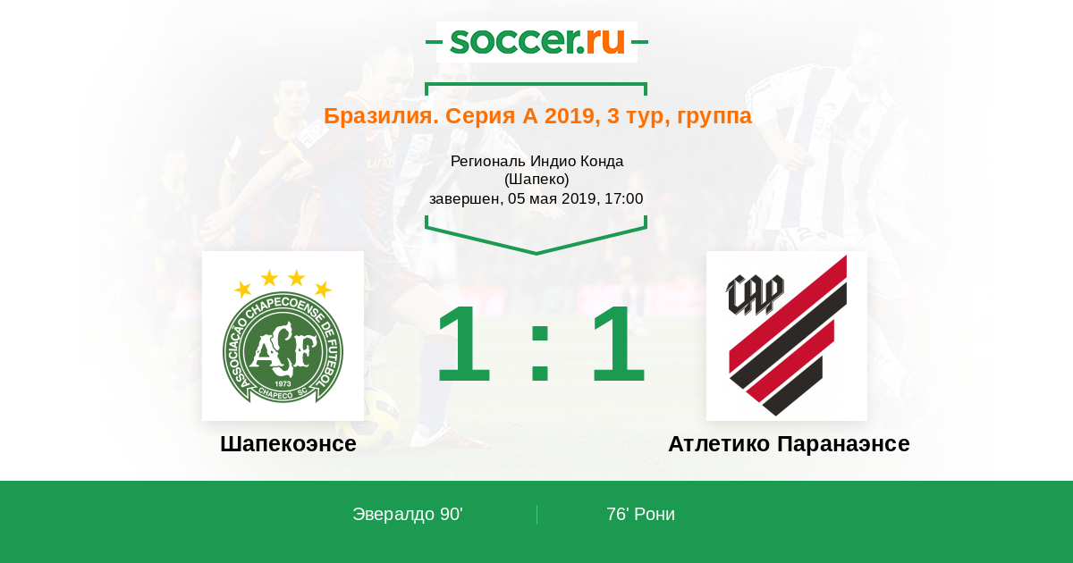 Бразилия. Серия А 14.09.2018 Шапекоэнсе Логотип футбольный клуб Шапекоэнсе 2:1 Логотип футбольный клуб Атлетико Паранаэнсе (Куритиба) Атлетико Паранаэнсе