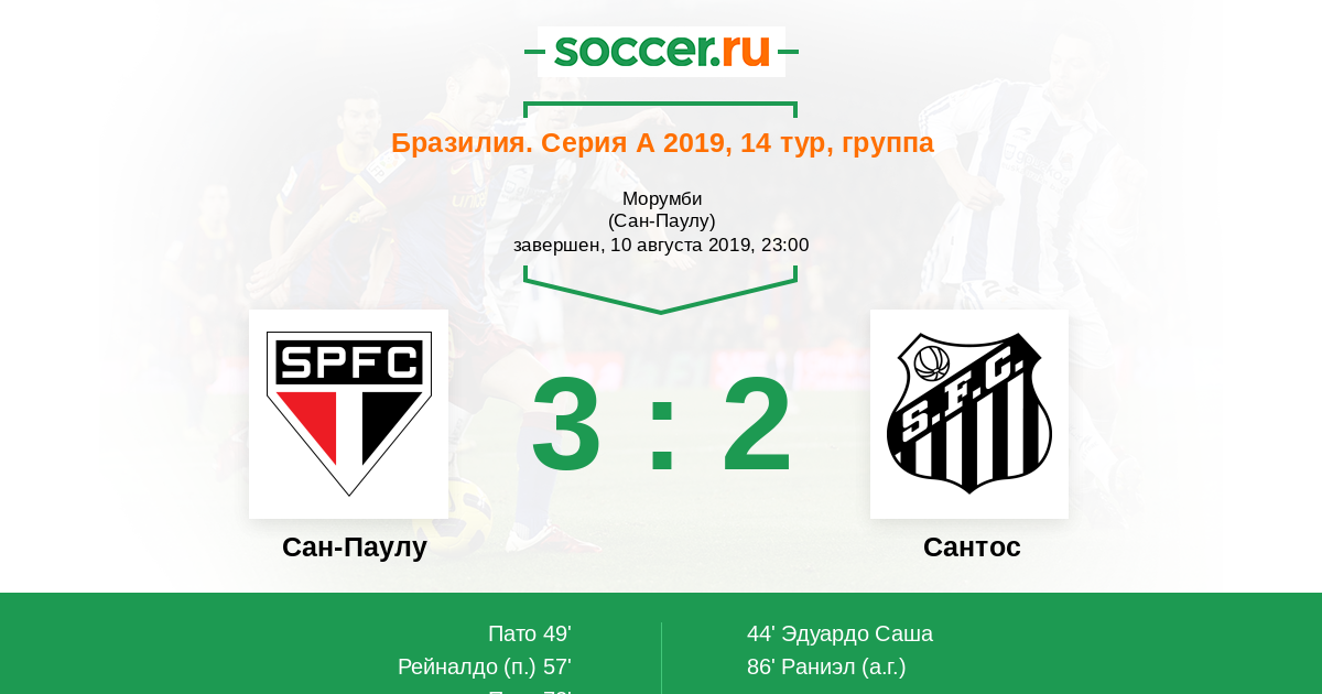 Бразилия. Серия А 10.09.2015 Сантос Логотип футбольный клуб Сантос (Сан-Паулу) 3:0 Логотип футбольный клуб Сан-Паулу Сан-Паулу