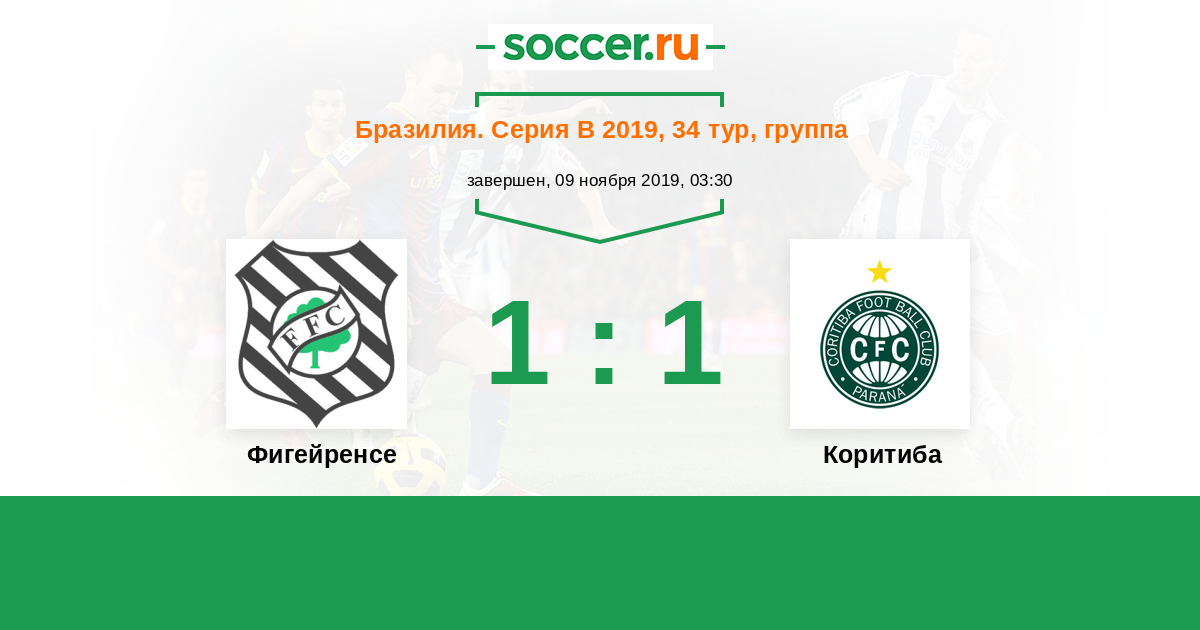 Бразилия. Серия В 14.10.2018 Фигейренсе Логотип футбольный клуб Фигейренсе (Флорианополис) 2:2 Логотип футбольный клуб Коритиба Коритиба