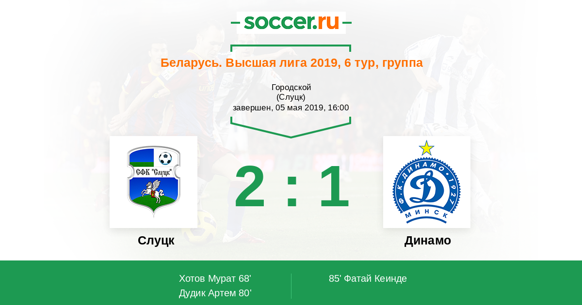 Беларусь. Высшая лига 02.05.2020 Динамо Логотип футбольный клуб Динамо (Минск) 1:2 Логотип футбольный клуб Слуцк Слуцк