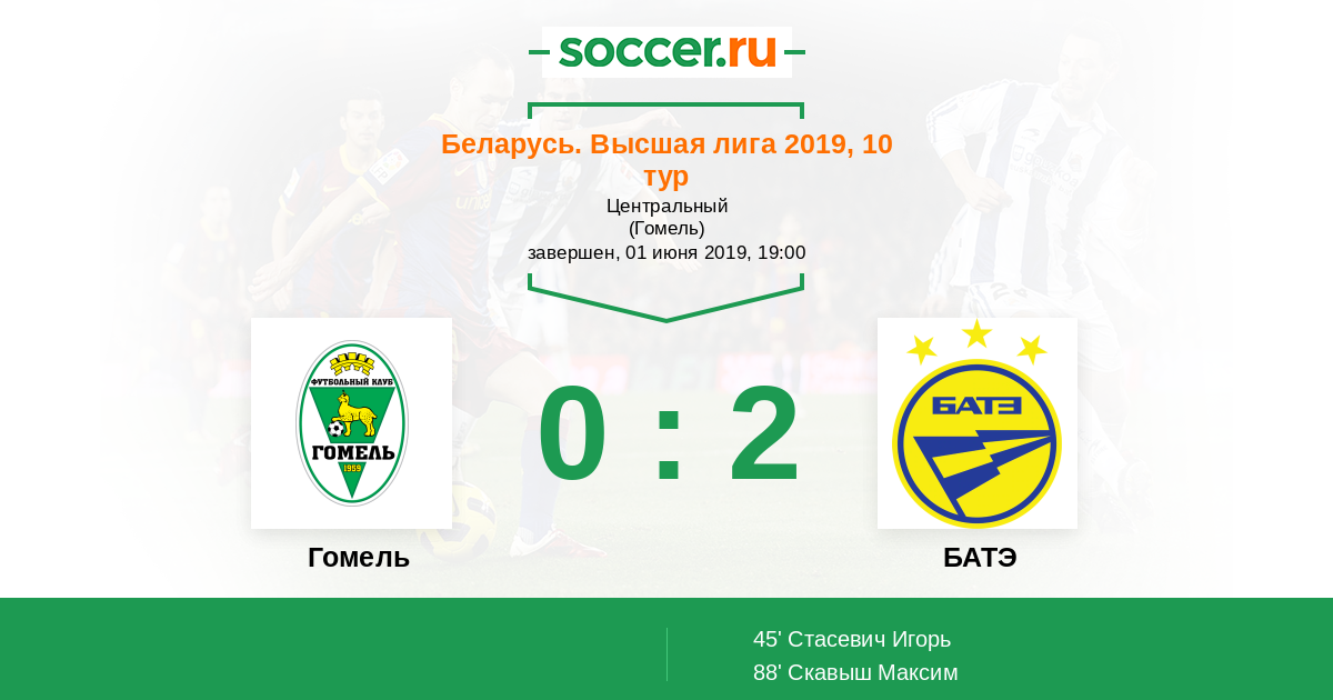Беларусь. Высшая лига 13.06.2018 БАТЭ Логотип футбольный клуб БАТЭ (Борисов) 3:0 Логотип футбольный клуб Гомель Гомель