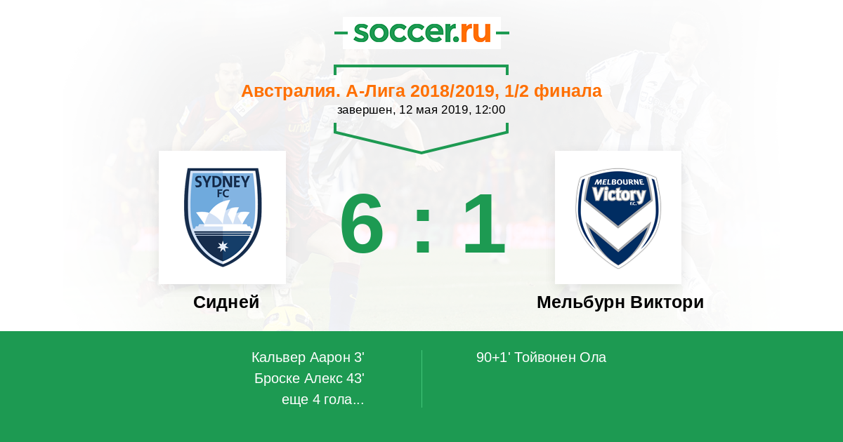 Австралия. А-Лига 06.04.2019 Сидней Логотип футбольный клуб Сидней 2:1 Логотип футбольный клуб Мельбурн Виктори Мельбурн Виктори