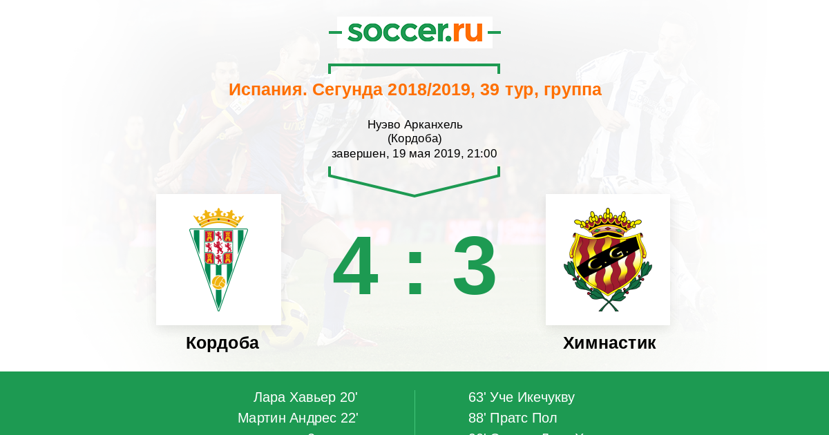 Испания. Сегунда 11.05.2012 Кордоба Логотип футбольный клуб Кордоба 4:2 Логотип футбольный клуб Химнастик (Таррагона) Химнастик