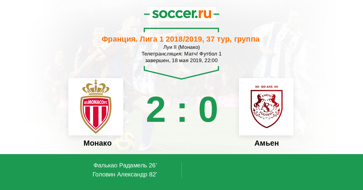 Удачи Амьену, нельзя Монако вперед пропускать. Как минимум не проиграть. 0-0
