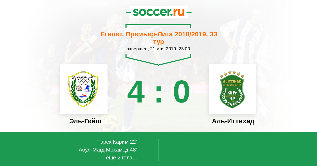 Египет. Премьер-Лига 26.04.2017 Аль-Иттихад Логотип футбольный клуб Аль-Иттихад (Александрия) 3:2 Логотип футбольный клуб Эль-Гейш (Каир) Эль-Гейш