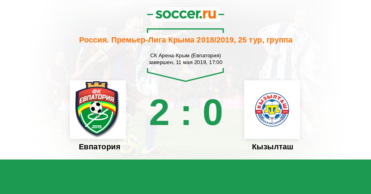 Россия. Премьер-Лига Крыма 28.04.2018 Евпатория Логотип футбольный клуб Евпатория 3:0 Логотип футбольный клуб Кызылташ (Бахчисарай) Кызылташ