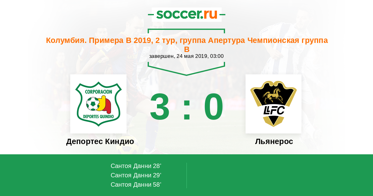 Колумбия. Примера B 22.05.2018 Депортес Киндио Логотип футбольный клуб Депортес Киндио (Армения) 3:0 Логотип футбольный клуб Льянерос (Вильявисенсио) Льянерос
