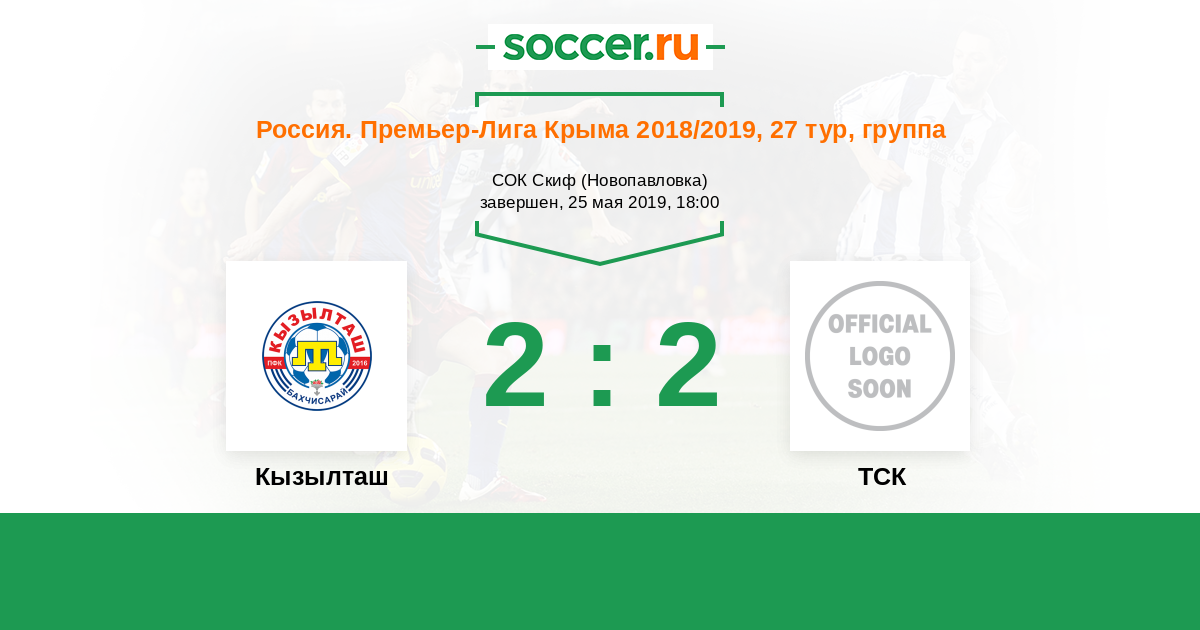 Россия. Премьер-Лига Крыма 06.04.2019 ТСК Логотип футбольный клуб ТСК (Симферополь) 1:1 Логотип футбольный клуб Кызылташ (Бахчисарай) Кызылташ
