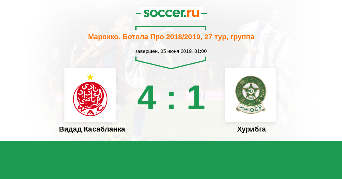 Марокко. Ботола Про 08.04.2018 Видад Касабланка Логотип футбольный клуб Видад Касабланка 4:2 Логотип футбольный клуб Хурибга Хурибга