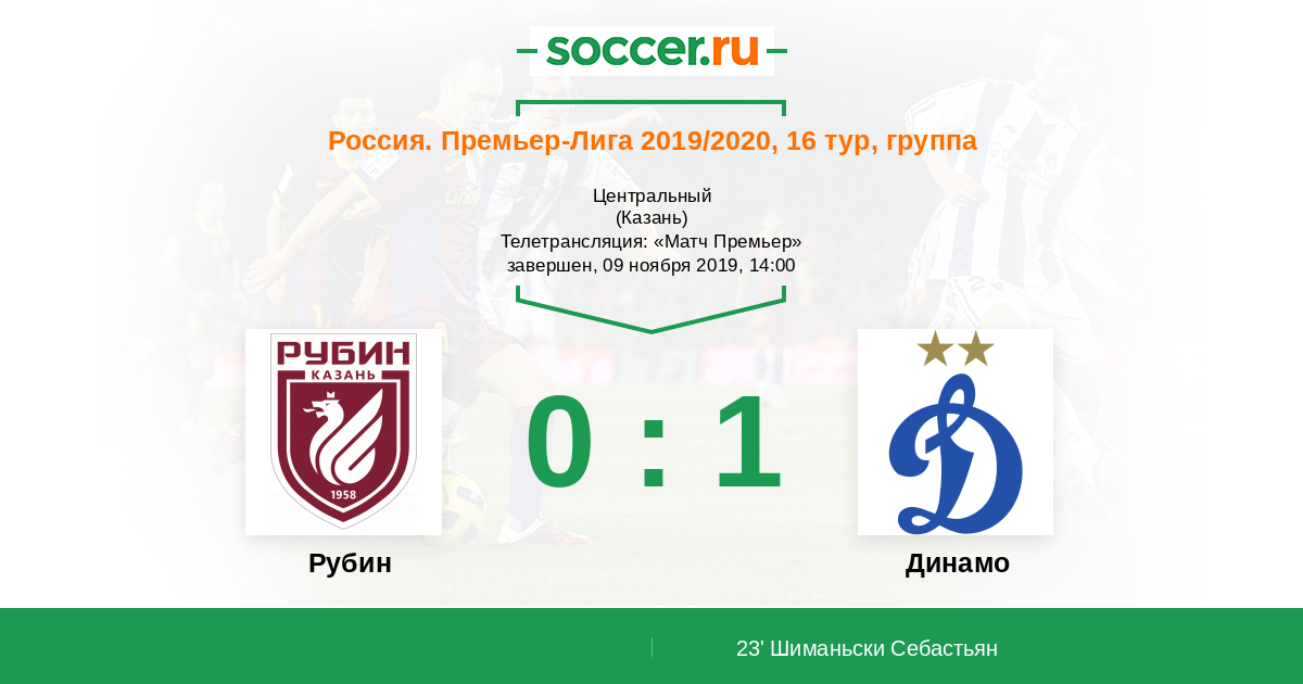 Россия. Премьер-Лига 27.10.2014 Динамо Логотип футбольный клуб Динамо (Москва) 0:2 Логотип футбольный клуб Рубин (Казань) Рубин