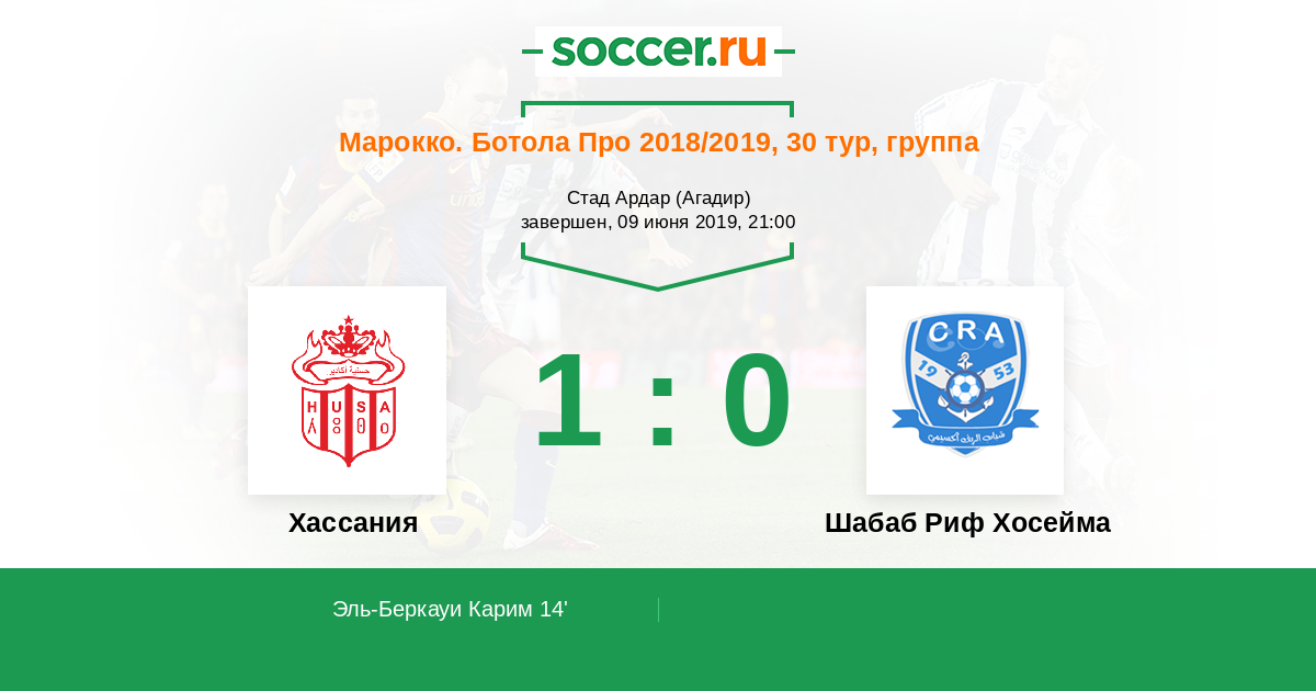 Марокко. Ботола Про 26.05.2017 Хассания Логотип футбольный клуб Хассания (Агадир) 3:1 Логотип футбольный клуб Шабаб Риф Хосейма (Аль-Хосейма) Шабаб Риф Хосейма