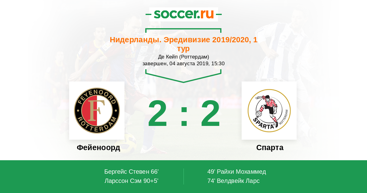Нидерланды. Эредивизи 18.10.2020 Фейеноорд Логотип футбольный клуб Фейеноорд (Роттердам) 1:1 Логотип футбольный клуб Спарта (Роттердам) Спарта