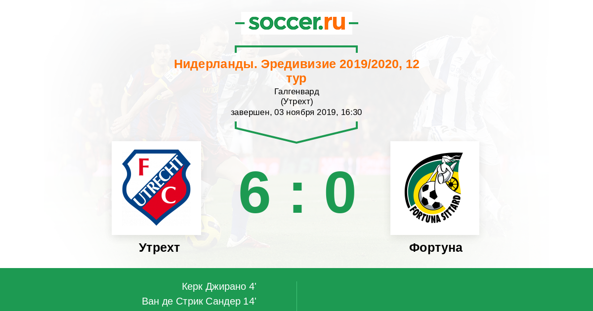 Нидерланды. Эредивизи 20.03.2021 Фортуна Логотип футбольный клуб Фортуна (Ситтард) 0:1 Логотип футбольный клуб Утрехт Утрехт