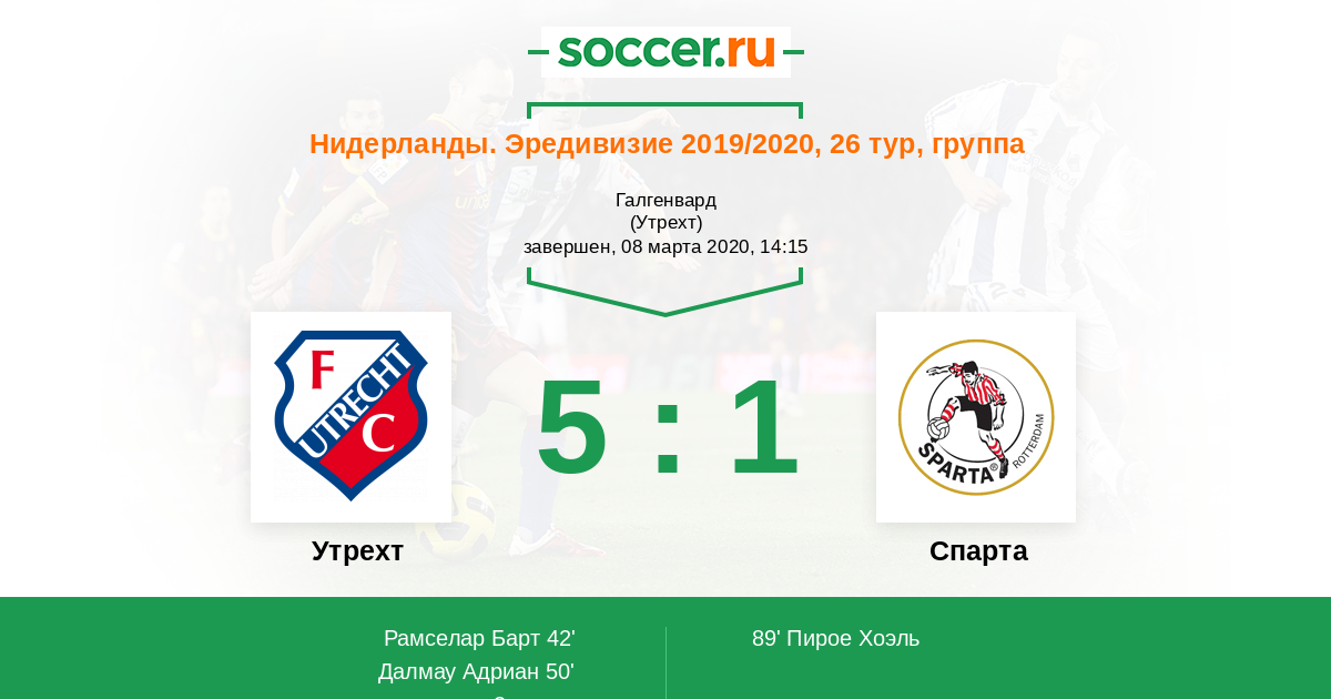 Нидерланды. Эредивизи 27.10.2019 Спарта Логотип футбольный клуб Спарта (Роттердам) 1:2 Логотип футбольный клуб Утрехт Утрехт