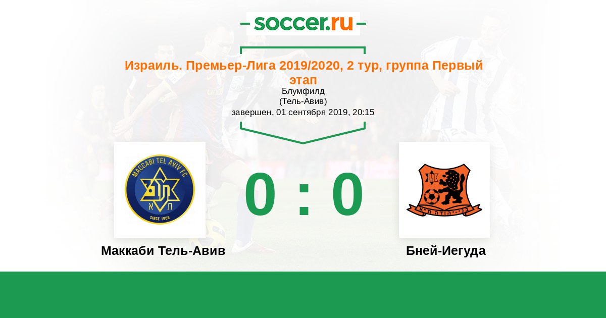 Израиль. Премьер-Лига 12.09.2020 Бней-Иегуда Логотип футбольный клуб Бней-Иегуда (Тель-Авив) 2:2 Логотип футбольный клуб Маккаби Тель-Авив Маккаби Тель-Авив