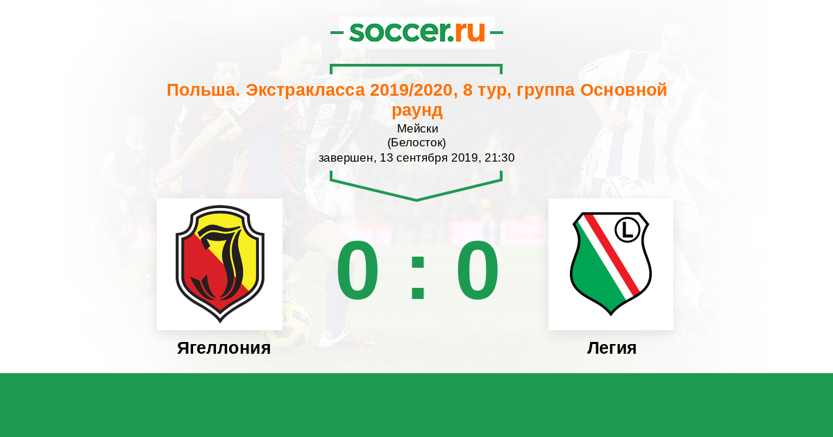 Польша. Экстракласса 24.06.2020 Ягеллония Логотип футбольный клуб Ягеллония (Белосток) 0:0 Логотип футбольный клуб Легия (Варшава) Легия