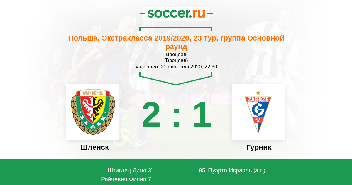 Польша. Экстракласса 25.02.2018 Шленск Логотип футбольный клуб Шленск (Вроцлав) 1:1 Логотип футбольный клуб Гурник (Забже) Гурник