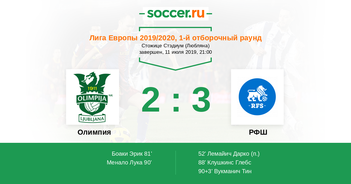 Олимпия 2:0 0:0 2:0