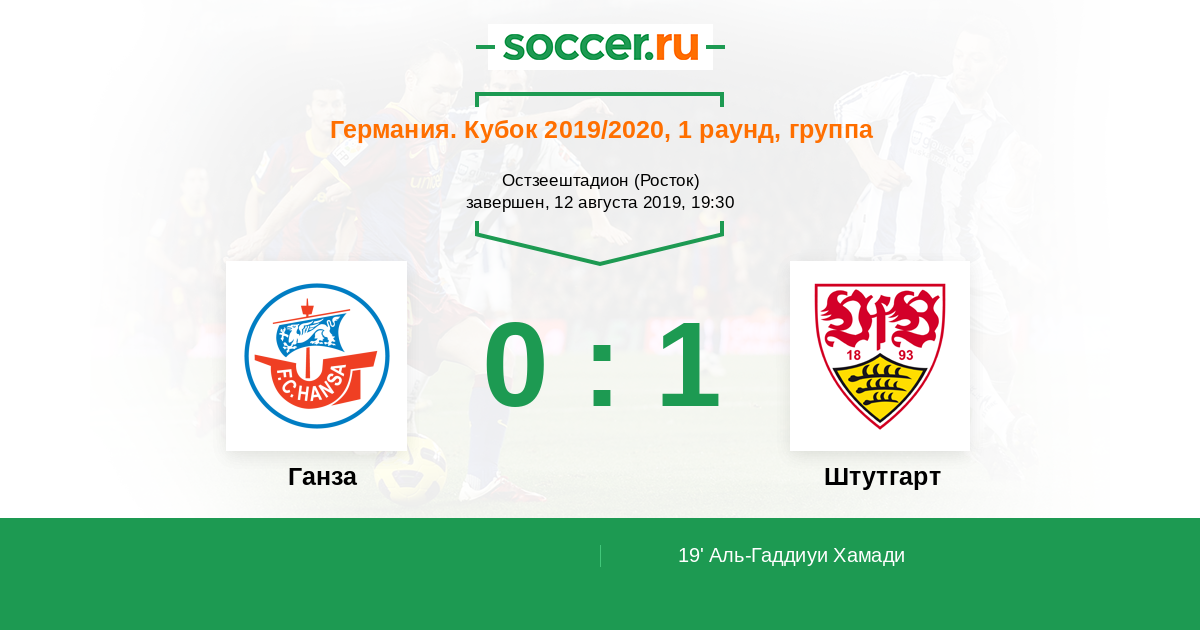 Германия. Кубок 18.08.2018 Ганза Логотип футбольный клуб Ганза (Росток) 2:0 Логотип футбольный клуб Штутгарт Штутгарт