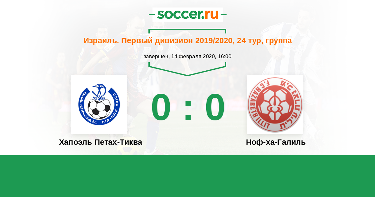 Израиль. Первый дивизион 21.06.2020 Хапоэль Петах-Тиква Логотип футбольный клуб Хапоэль Петах-Тиква 1:2 Логотип футбольный клуб Ноф-ха-Галиль (Назарет Иллит) Ноф-ха-Галиль