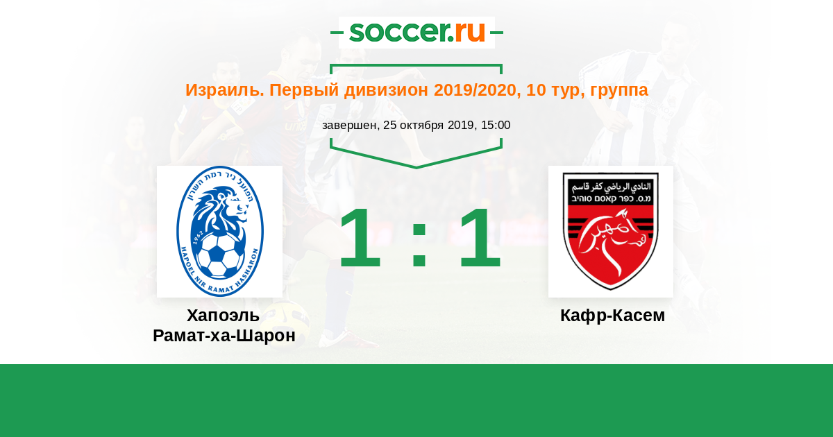 Израиль. Первый дивизион 25.12.2020 Хапоэль Рамат-ха-Шарон Логотип футбольный клуб Хапоэль Рамат-ха-Шарон 1:0 Логотип футбольный клуб Кафр-Касем Кафр-Касем