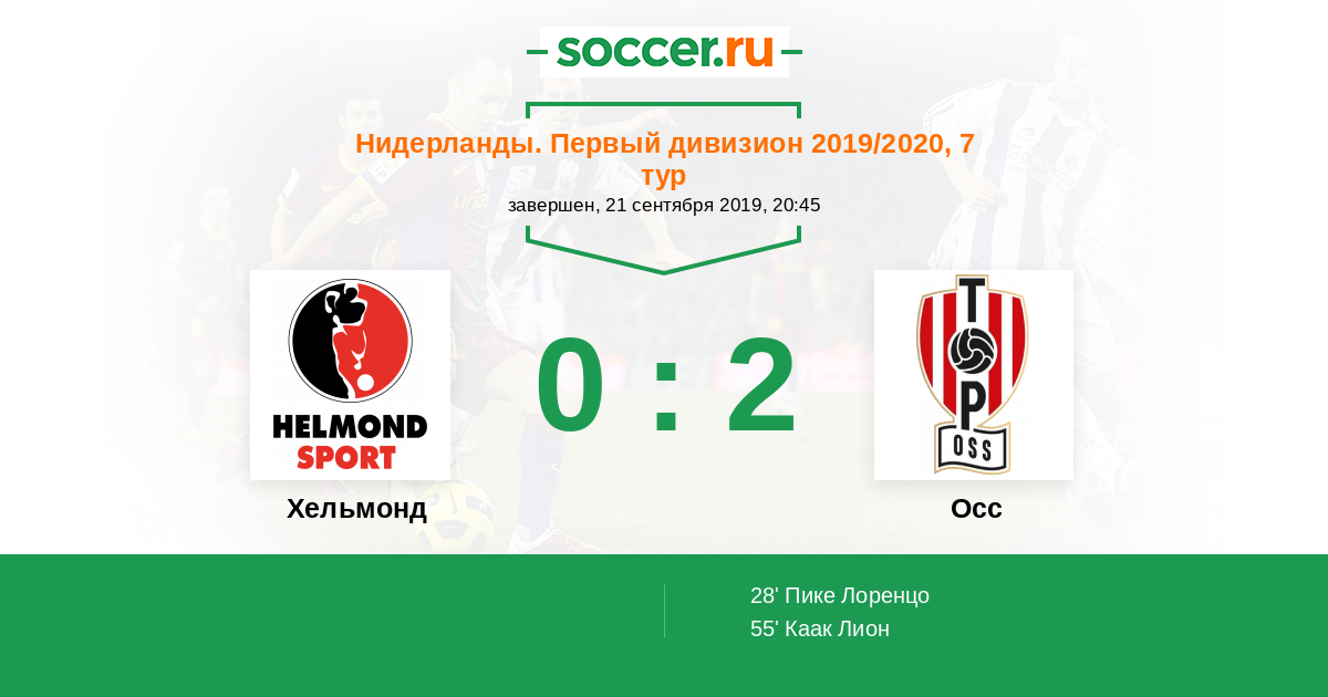 Нидерланды. Первый дивизион 29.08.2020 Осс Логотип футбольный клуб Осс 1:2 Логотип футбольный клуб Хельмонд Хельмонд