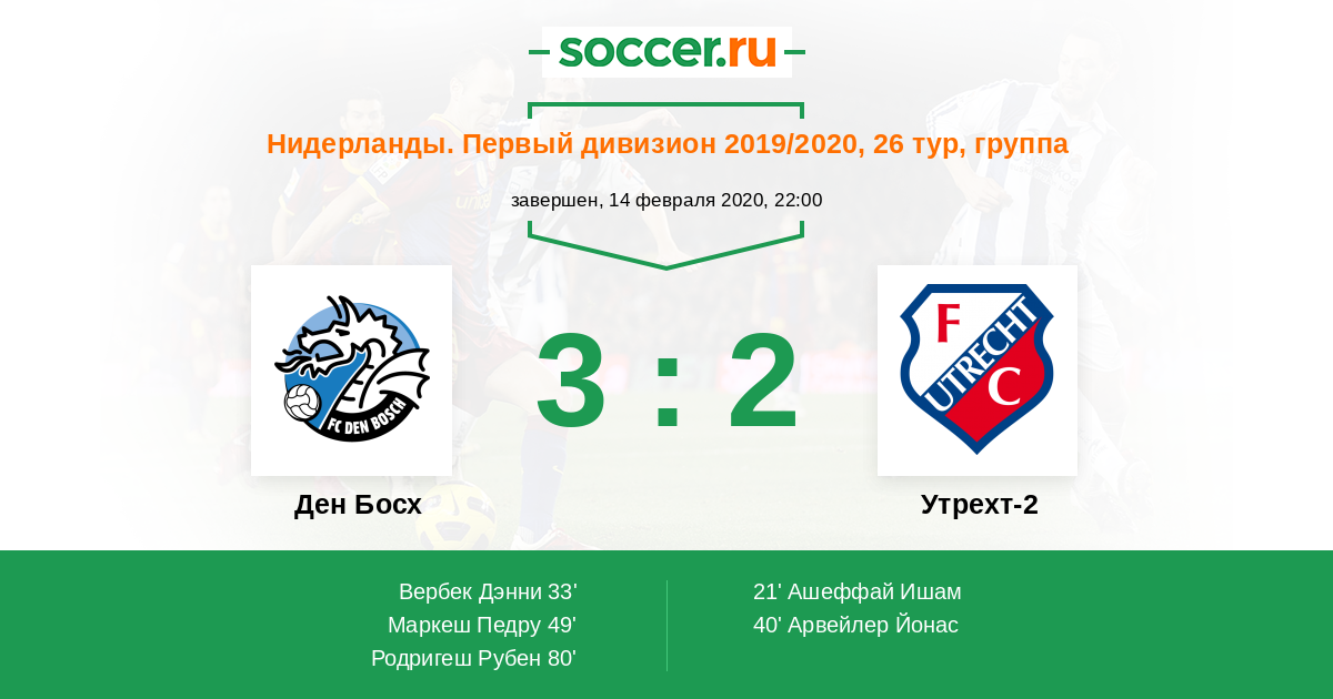 Нидерланды. Первый дивизион 26.02.2021 Ден Босх Логотип футбольный клуб Ден Босх (Хертогенбос) 3:0 Логотип футбольный клуб Утрехт-2 Утрехт-2
