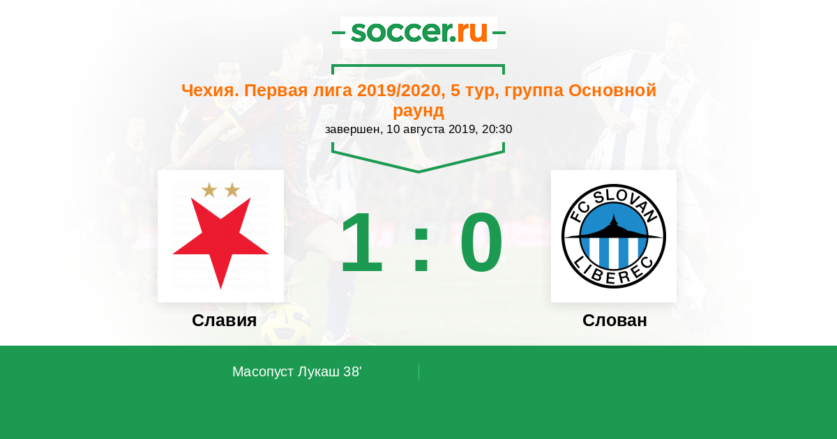 Чехия. Первая Лига 28.07.2013 Слован Логотип футбольный клуб Слован (Либерец) 2:1 Логотип футбольный клуб Славия (Прага) Славия