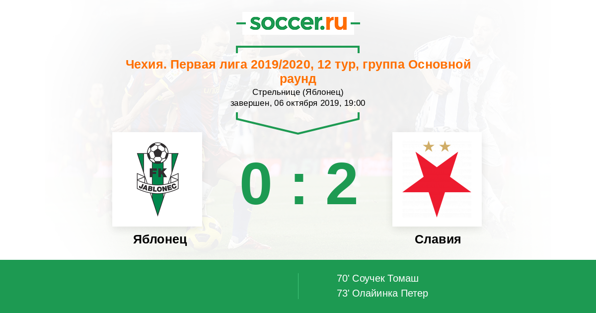 Чехия. Первая Лига 20.10.2024 Яблонец Логотип футбольный клуб Яблонец (Яблонец-над-Нисоу) 1:2 Логотип футбольный клуб Славия (Прага) Славия