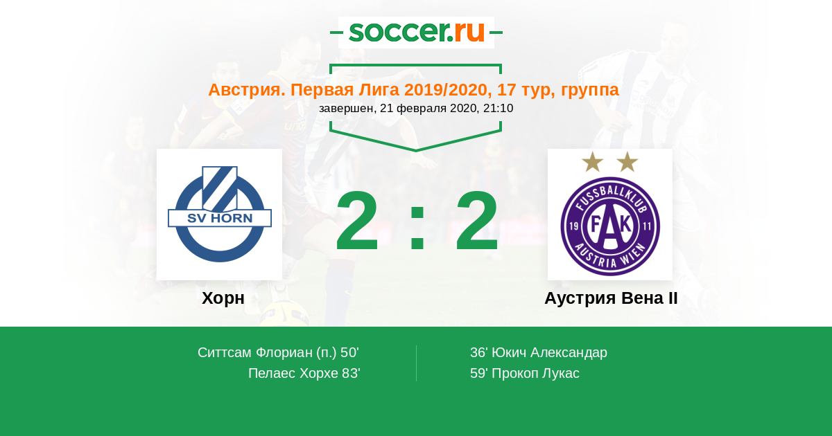 Австрия. Первая Лига 18.04.2022 Хорн Логотип футбольный клуб Хорн 0:1 Логотип футбольный клуб Аустрия Вена II Аустрия Вена II