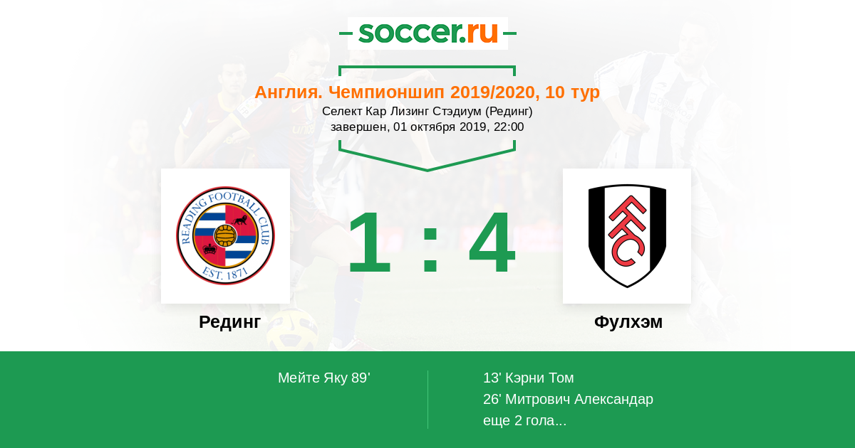 Англия. Чемпионшип 24.10.2015 Фулхэм Логотип футбольный клуб Фулхэм (Лондон) 4:2 Логотип футбольный клуб Рединг Рединг