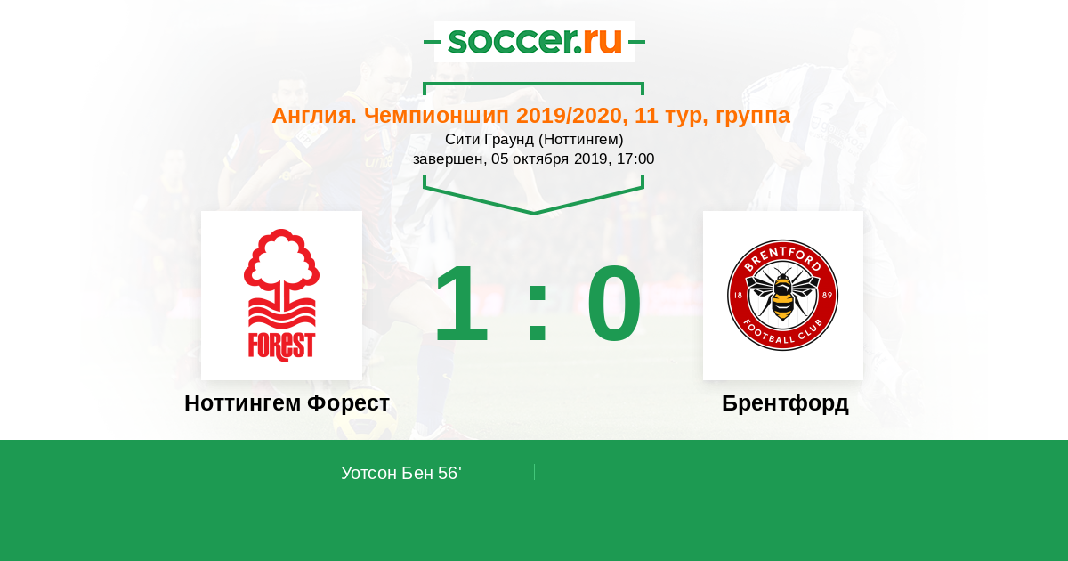Англия. Чемпионшип 01.09.2018 Брентфорд Логотип футбольный клуб Брентфорд (Лондон) 2:1 Логотип футбольный клуб Ноттингем Форест Ноттингем Форест