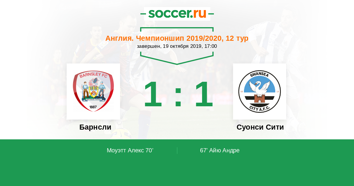 Англия. Чемпионшип 19.12.2020 Суонси Сити Логотип футбольный клуб Суонси Сити 2:0 Логотип футбольный клуб Барнсли Барнсли