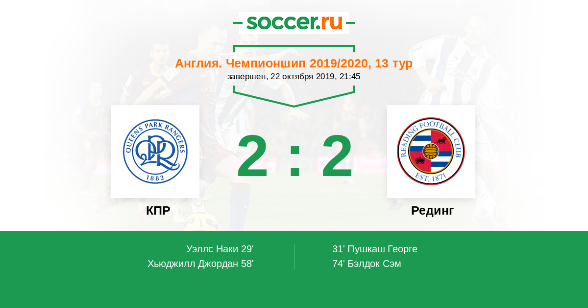Англия. Чемпионшип 07.10.2022 КПР Логотип футбольный клуб КПР (Лондон) 2:1 Логотип футбольный клуб Рединг Рединг