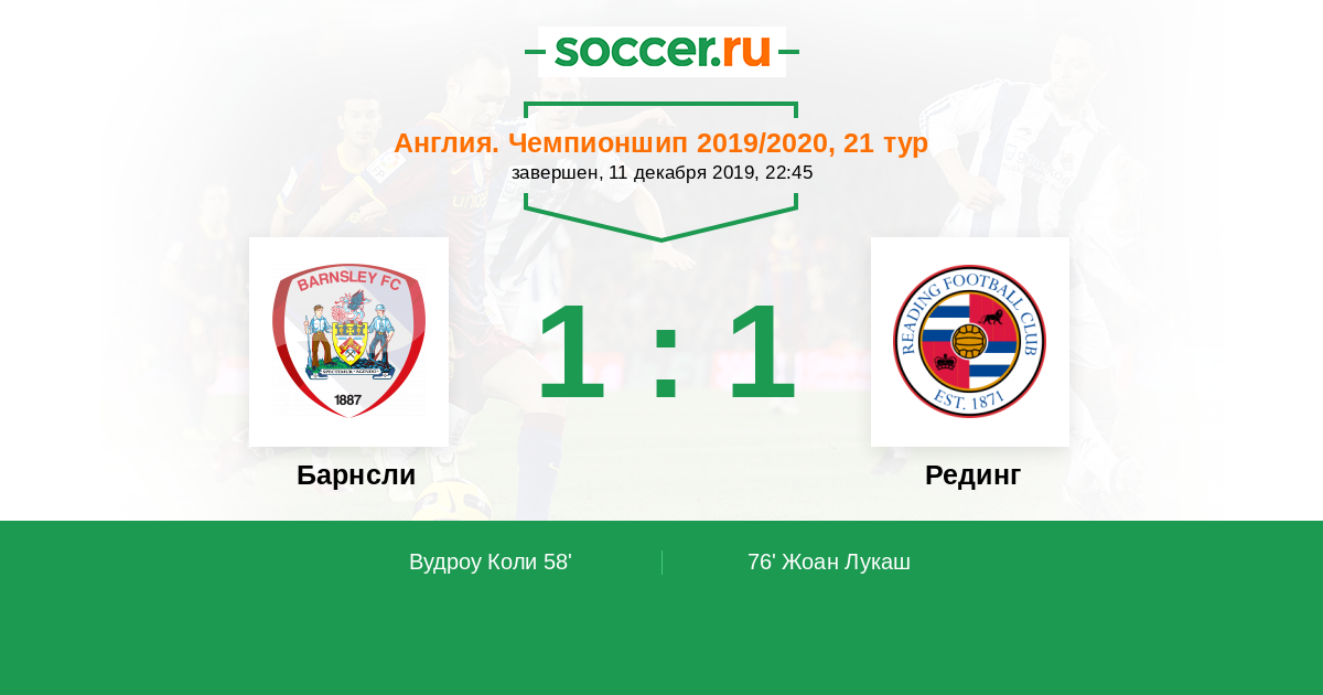 Англия. Чемпионшип 30.12.2017 Барнсли Логотип футбольный клуб Барнсли 1:1 Логотип футбольный клуб Рединг Рединг