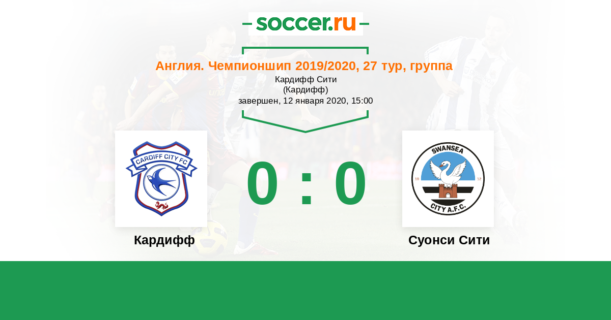 Англия. Чемпионшип 12.12.2020 Кардифф Логотип футбольный клуб Кардифф 0:2 Логотип футбольный клуб Суонси Сити Суонси Сити