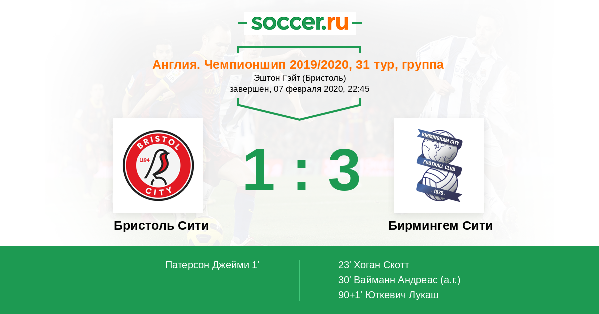 Англия. Чемпионшип 26.02.2019 Бристоль Сити Логотип футбольный клуб Бристоль Сити 1:2 Логотип футбольный клуб Бирмингем Сити Бирмингем Сити