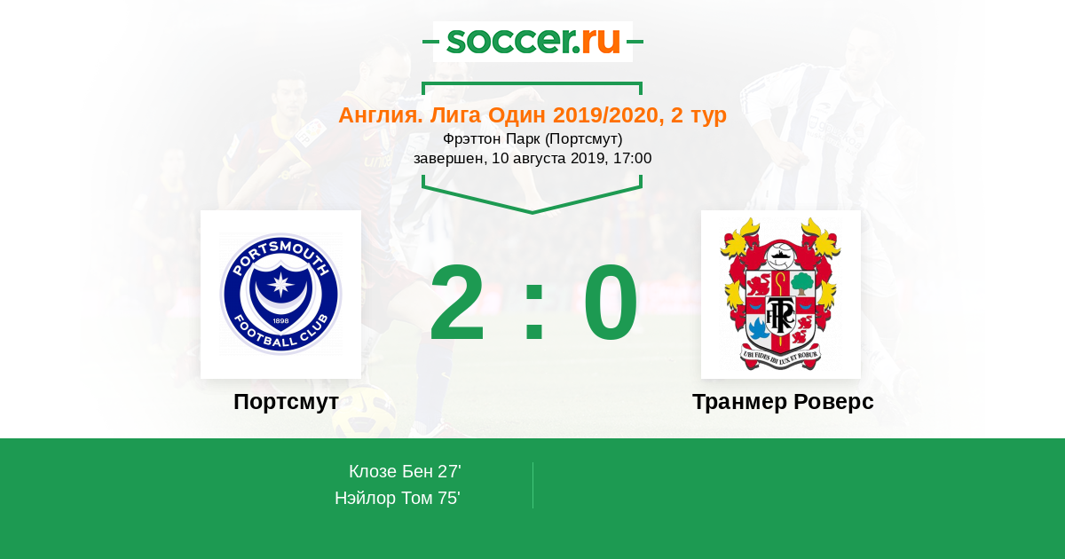 Англия. Первая Футбольная Лига 08.02.2020 Транмер Роверс Логотип футбольный клуб Транмер Роверс 0:2 Логотип футбольный клуб Портсмут Портсмут