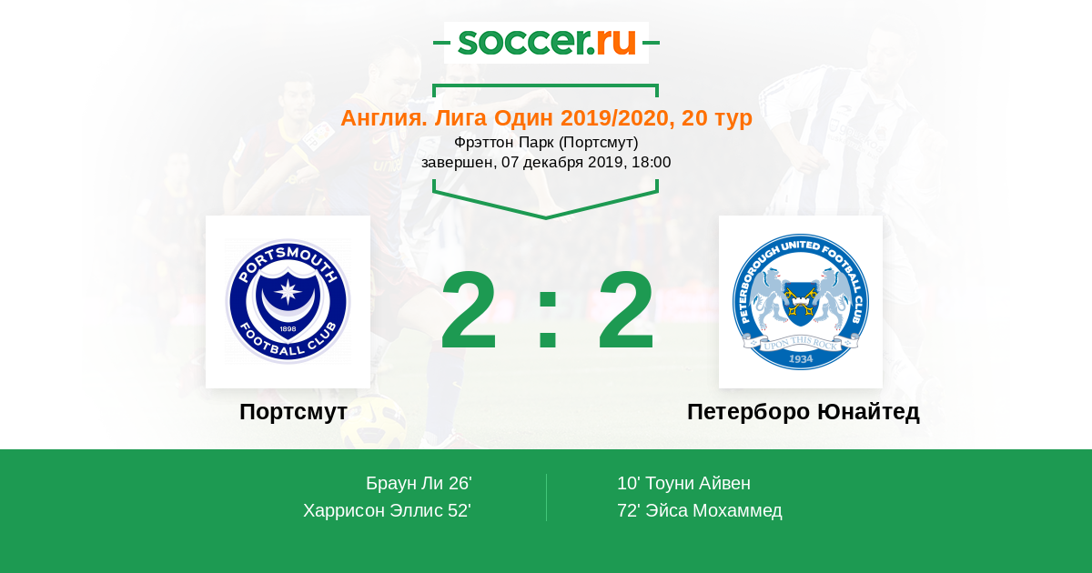 Англия. Первая Футбольная Лига 05.12.2020 Портсмут Логотип футбольный клуб Портсмут 2:0 Логотип футбольный клуб Петерборо Юнайтед Петерборо Юнайтед