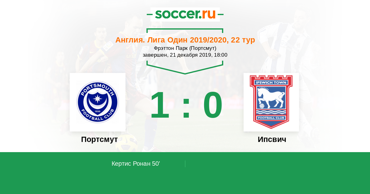 Англия. Первая Футбольная Лига 12.12.2020 Ипсвич Логотип футбольный клуб Ипсвич 0:2 Логотип футбольный клуб Портсмут Портсмут