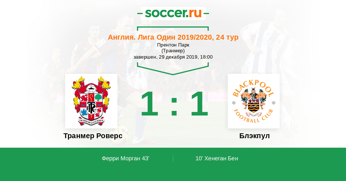Англия. Первая Футбольная Лига 10.03.2020 Блэкпул Логотип футбольный клуб Блэкпул 1:2 Логотип футбольный клуб Транмер Роверс Транмер Роверс