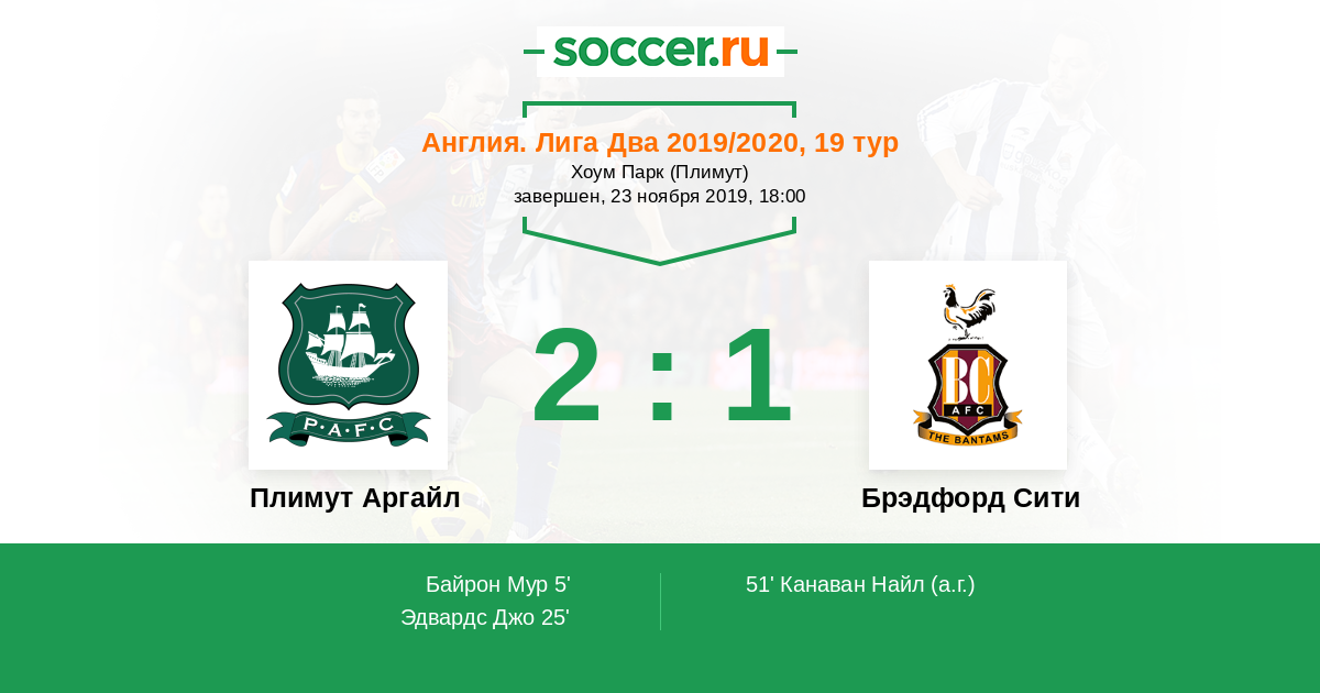 Англия. Вторая Футбольная Лига 29.02.2020 Брэдфорд Сити Логотип футбольный клуб Брэдфорд Сити 2:1 Логотип футбольный клуб Плимут Аргайл Плимут Аргайл