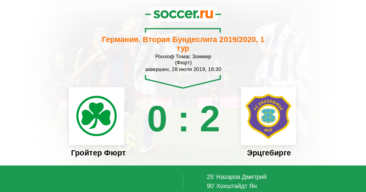 Германия. Бундеслига 2 25.09.2020 Эрцгебирге Логотип футбольный клуб Эрцгебирге (Ауэ) 1:1 Логотип футбольный клуб Гройтер Фюрт Гройтер Фюрт