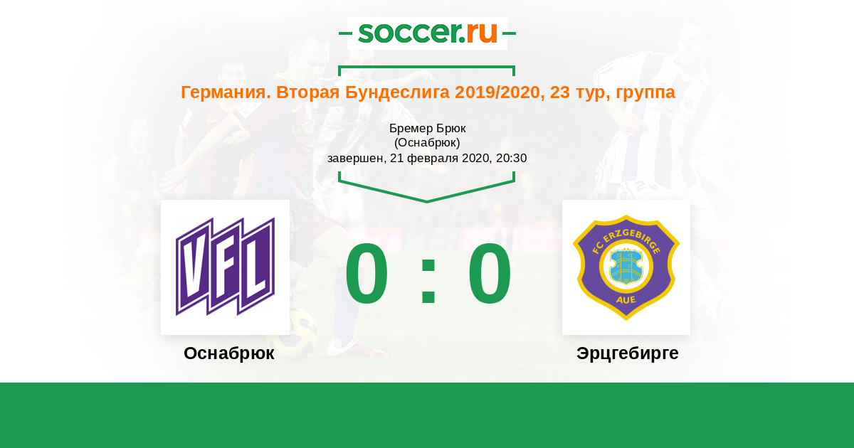 Германия. Бундеслига 2 22.01.2021 Оснабрюк Логотип футбольный клуб Оснабрюк 0:1 Логотип футбольный клуб Эрцгебирге (Ауэ) Эрцгебирге