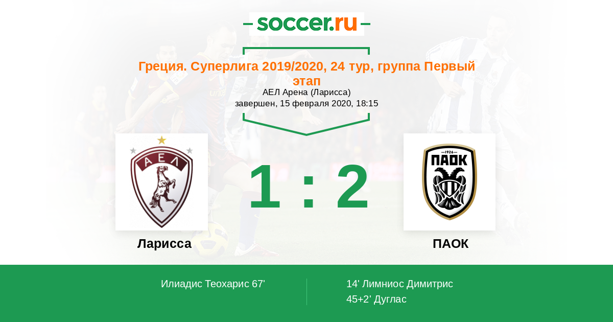 Греция. Суперлига 12.02.2018 ПАОК Логотип футбольный клуб ПАОК (Салоники) 3:0 Логотип футбольный клуб Ларисса Ларисса